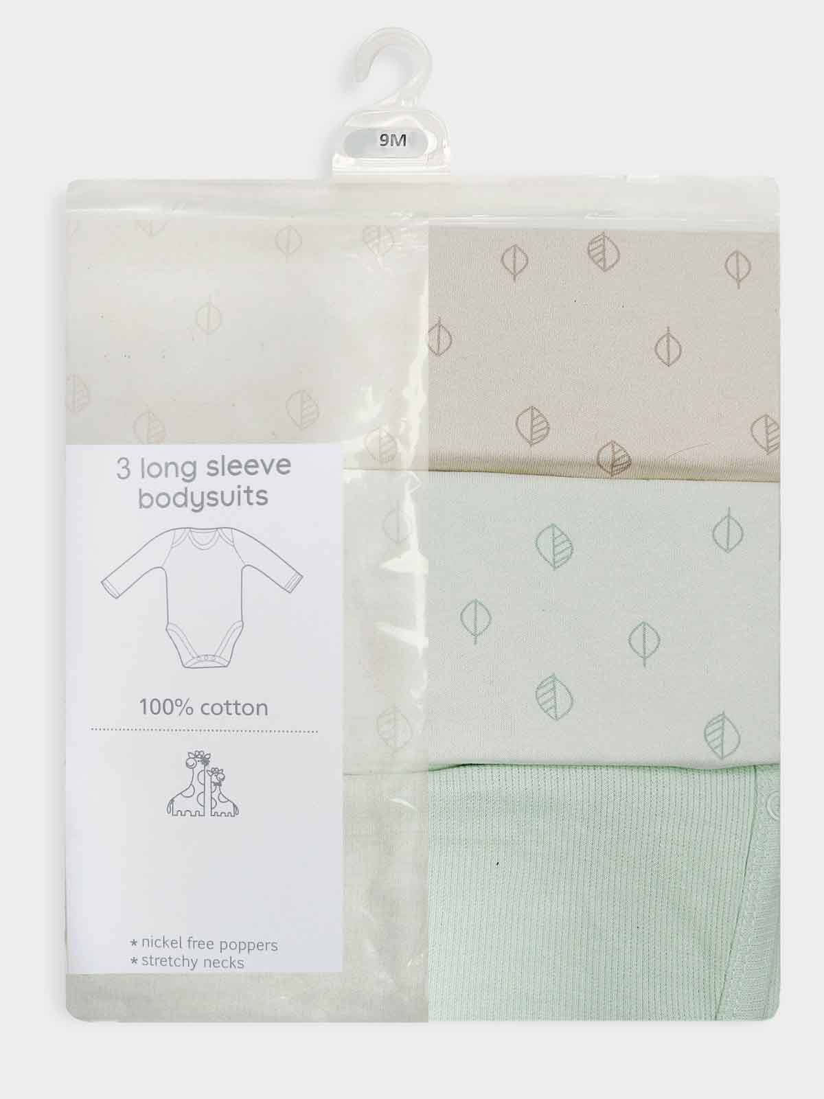 Baby 3 Pack Long Sleeve Bodysuits Mixed
