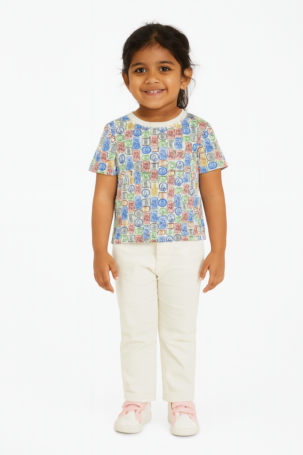 Girls Printed T Shirt White Stamps AOP